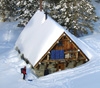 San Antonio (Mt Baldy) Ski Hut - The San Antonio Hut on Mt. Baldy was built by the SMS in 1937 and provides acess to challenging skiing. At 8200', the hut is reached by a steep, 3 mi hike (2200' gain). The trailhead starts one mile beyond the locked gate of Falls Rd. The locked gate is adjacent to Mt Baldy Rd, near Harwood Lodge and Manker Flats Campground. Facilities: The hut has a fully equipped kitchen of cookware, dishes, and utensils. Water from a spring is piped directly through the kitchen. Wood stoves for cooking and heating. Dormitory sleeping loft with approximately 20 bunk beds. Furnish your own food, sleeping bag, and flashlight. Outhouse.