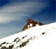 Approaching the Two Teats I wondered why Susan fell so far behind. I climbed into the saddle (bosom?) of the Two Teats to look at the remaining route to San Joaquin. At least another hour round trip to the summit! By now it was 1 pm and half the sky was grey. I decided to have fun in the Teats and climbed the exposed one. The other one had a bra of sastrugi on and was less attractive.