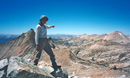 We climbed up to the highest point of Abbott's talus fan, entered the middle of three chutes as described by R.J., and followed the gully to the series of chutes leading to the top of the ridge. The chute was full of talus and boulders. Reiner stayed to one side and I was on the other side, which avoids rock fall on each other. The climbing in the chute was nice. Once on the ridge it was an easy walk to the top of Abbott. What a nice peak to climb. On the ridge top we found fresh polemonium.