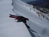 On the next run, I decided to ski the upper part of the mountain from Chair 3. There were many exceptional, untracked powder runs throughout the day, from South Bowl to the north edge of the resort. There also were many terrain features and aspects where the hard, brown and black matter below the thin layer of new snow ripped and tore at my skis turning them into gnarled shreds of what they formerly were.