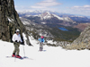 I had assurances from a ski bum in town that the snow quality improved above 10,000’, so on we went. The snow was still quite firm as we reached the bottom of the couloir, but generally of better quality. A few of us headed up to the top, while the rest decided to stop and begin the lunch festivities.