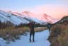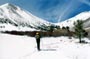 On Sat, 3/8, the alarms went off at 4 am. Had breakfast by flashlight, packed, put the skis on and left under starlight at 4:45am. Owls were howling, otherwise it was dead quiet. There were patches of black ice on the road. Ted took a tumble without problems, and then Jim did, hurt his knee and unfortunately had to return. By 6 am we had daylight and saw the awesome snow-covered White Mtn Range in front of us.