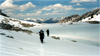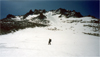 In the middle of the chute parallel turns worked best and further down where the sun had softened the snow it was telemarking at its best. We left many tracks on the north side of Brewer which were visible for a long distance. Back at camp we packed, snacked, and then skinned up to Pass 12,000' which we reached by noon.