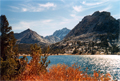 On Monday, 10/16/88, we were refreshed and ready to hike out. It was another classic fall day in the Sierras, cool in the morning, summer-like by midday and lots of sunshine. We stopped at some pretty lakes like Bullfrog where the leaves had turned yellow-red. Some call the hike-outs "uneventful" but it is sometimes the best part of the trip: The feeling of having accomplished a challenging climb and now enjoying nature without tension.