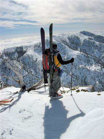 The original skiing objective was an open traverse over the 3 T's (Thunder, Telegraph and Timber Peaks) in Southern California's San Gabriel Mountains - probably less than a couple of air miles east of Baldy Bowl. Four other strong and talented skiers: Scott Bornheimer, Don Sutton, Angel Ocana, and Cedric Ma were up for the adventure that had been on my goal list for a long time.