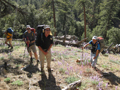 We started up the 2 mile long dirt road through the boy scout camp that ends at a shockingly beautiful water fall. There, we took a cool breather before hopping on the 1 mile long, switch backing trail that leads from the falls to Lilly camp. By this time, Ryousuke & Yoshi were of no worry at all; they were holding up splendidly with backpacks they unaccustomed!