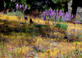 Once on top, oh la, la! It was simply heavenly! Fragrant, abounding lupines, pines, & great vistas every which way! Any spot would have made a fine camp; all we had to do was choose! There was ample firewood, too. A campsite & fire were made in no time. A communal, vegetarian dinner with conversation around the soothing fire followed. By eleven, we were in our beds, & our own, private star gazing began.