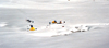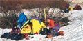 We descended carefully on breakable crust. By 4:30pm we were "home" at basecamp and I set up my tent on the frozen lake next to our waterhole. A strange cloud layer moved in from the east and deposited a few inches of snow overnight.
