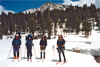 The goal was to go over Frozen-Lake Pass (11 368152E, 4096334N, 12,200') into Lake Basin and down to Marion Lake. Head-on, F-L Pass looks intimidating but when we approached it was just another good workout with ice axe and crampons. By 12 noon we all had crossed the pass, signed a "pass" register, and skied down into Lake Basin. Looking back at the pass we saw an eagle standing still in the upwind air over the pass. Lake Basin is a wonderful touring terrain. We detoured a bit too far toward Cartridge Pass but soon returned down Cartridge Creek toward Lake 10,632' and finally to Marion Lke (10,296'). Our campsite (11 364926E, 4093091N) was at the lake outlet with running water and tree shelter. We needed it since the weather had deteriorated. It was cold, windy and snowing. We cooked out of the tents. Only the unavoidable nature call got one into the stormy night. It snowed probably 6²-8¹ overnight.