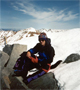 Wednesday morning, Reiner and Ken set out early to climb Merced Peak (11,726'). We left our skis just above a small col and had an easy 500-ft climb to the summit. Although there were tracks of a party preceding us, they evidently did not locate the summit register because we were the first entry since October '92. The views from the summit were amazing. We could see for at least 100 miles! The coast range was clearly visible, as were Tioga Pass and northward, Ritter, Banner, the Minarets, and the vast central Sierra. Both of us wished we had arranged a pickup in Mammoth so we could just keep on going.
