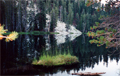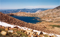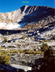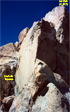 This was a summer solo peak climbing trip into the Clark Range in Yosemite N.P. It is shown to contrast the sceneries seen on various SMS ski trips with those during summer time. For example, SMS ski trips have been done to the Southern Clark Range, the Yosemite High Route, the Mammoth-Yosemite Trans-Sierra, and in summer we have climbed Mt Ansel Adams and nearby peaks. The Clark Range is a major chain of high mountains in the eastern Yosemite backcountry. It is widely visible, remote and accessible in normally two days of hiking. Four peaks are on the SPS list and Mt Clark is a challenging mountaineers peak. During the years when the Sierra Club denied mountaineering insurance for scheduled trips, I did a lot of solo trips, which is a good way of gaining confidence in orienteering, climbing class 4 peaks and safety in general. A trip to the Clark Range looked like a good adventure. Following previous trip descriptions I started on the Mono Meadows Trail, crossed the Illilouette Creek, passed south of Starr King and left the trail near the Clark Fork for a two hour XC hike through forest. From previous storms or fires lots of trees were downed and the terrain looked like an obstacle course. Traditional orienteering in dense forest is a challenge and the best way is to follow a creek. I headed east in the vicinity of the Clark Fork, which eventually leads to a nice lake between Clark and Gray, about 0.5mi NW of the latter. There I set up camp for the climbs of Clark and Gray. The easiest ascent of Mt Clark is via the southeast ride. The climb is class 3 except for a short class 4 jump across an awkward gap just below the summit. This "Fresh Air Traverse" is easier on the descent since the jump is downhill, nevertheless exciting when you are unroped alone. The views from the summit of Mt Clark (11,522') are wonderful. You can look down on Half Dome and Starr King, see the Ritter Range in the east and more peaks of the Clark Range to the south. The next morning, 9/19, I had an early start for Gray Peak (11,573'). It is a straightforward cl2-3 peak climb and I was on the summit at 8am. Again fine views for many miles in all directions. I had my second breakfast, signed the book, took pics, then headed down. Packed up my camp and headed for Red Peak. I hiked south to Lake 10,400' about 3/4mi NW of Red Peak, then up the northwest slopes and reached the summit of Red Peak (11,699') by 3pm. Great views of the Clark Range peaks to the north and south. One can also look into the headwaters of the Lyell Fork. What a difference to the scenery in wintertime, for example from the summit of Merced Peak or the view of the Clark Range in winter from a Trans-Sierra ski tour. After descending from Red Pk there was still enough time to head part way back. I followed Red Creek and arrived by last daylight at the remote Grayling Lake, which even had a register to sign in. Not a soul at this pretty lake, truely a place of total solitude. It was a peaceful night. Next morning I hiked out more or less the same way as in. On the Illilouette Creek trail there was an unusual sight: A huge boulder standing upside down on its tip. Maybe the trees keep it from falling :)
