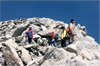 On Sun morning we skinned up the slopes east of Conness aiming for the North Couloir. Since it was a warm and sunny spring day the snow soon softened up. It was possible to ski up the North Couloir but most in the group hiked it with ice axe and crampons. The ridge to the summit was free of snow so that the ascent became a regular cl3 rock scramble. By midday we all sat on the summit and enjoyed the splendid views. We ate lunch, took pictures, signed the register and returned.