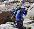 We took the Piute Pass trail, which was intermittently dry and snow covered and easy to loose. Some bushwhacking is not unusual for ski trips in the Eastern Sierra Nevada. We had a lunch break below Loch Leven. Don noticed that he had forgotten some important medicine. Little choice, he had to go back and fetch it. He would catch up with us later. After a leisurely lunch break we skinned up to Loch Leven (10,743') which was still snow covered. But there were puddles of melt water on the ice and it was a warm day. After some soul searching and ice poking we dared to ski across it to the other shore where we continued on solid ground. Wouldn't be nice to have another gadget to measure the ice thickness?
