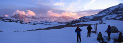 Happy hour and dinner time followed as we watched ever-changing cloud formations coming in from the northwest. It was anyone's guess what the next day would bring. At sunset we had some spectacular photo ops of red cloud formations and glowing mountain peaks. It was a wonderful day.