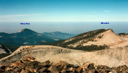 But there was no time for relaxing on this high peak. The clouds were drifting in and I could not afford to climb in a whiteout, leave alone wet slippery rocks or possible thunderstorm activities. Thus I went down fast but carefully. One hour and 2,000' lower I was sure the clouds would not get me. But in the late afternoon the entire mountain was engulfed in clouds. Thus, I was lucky to have made it up and down without trouble. It was a day of excitement.