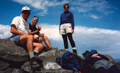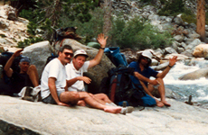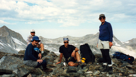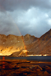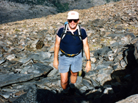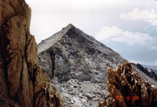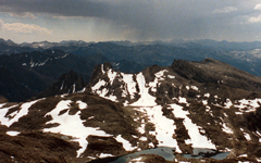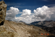 We ascended Lamarck Col, then dropped into Darwin Canyon, down to the Evolution Valley and to the southwest side of The Hermit. At the summit I set up a fixed rope tossed over the summit and then we ascended the 15' to the top. This was the excitement of the day. The return was uneventful. Fording the Evolution Creek posed no problem but the weather was unstable due to tropical moisture from the south, which is common in early summer. We had to take shelter from heavy rain. On Lamarck Col we had to descend at a fast pace to avoid getting into a thunderstorm in open terrain. But all in all, it was a nice trip to a peak which posed some challenge.