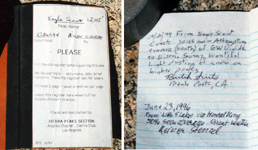 Early on day 2 I hiked up to Fairwell Gap, a cool and windy place. An hour later I was on Vandever Mtn with again wonderful views. The summit register from 1986 had familiar names of SPS/SMS members. After a short XC scramble it was easy hiking down on trails. Pretty Fall colors were visible at the lower elevations of Mineral King. I enjoyed two fine days of hiking and climbing.