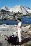 This was a private summer climbing trip of a class 5 peak, The Hermit, north of Evolution Valley. Ruth von Rotz also "collected" SPS peaks and came along. The class 5 section only refers to the summit block, otherwise it is a cl 2-3 peak. Because of the summit block I brought a rope and some hardware along.