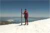 There was no register (it may have been buried under snow) and most of the group had a nice long stay on the summit. Reiner took us down the south side of the peak, with fairly steep stuff that most aggressively tele'd (but I did some kick-turns to avoid any mishap with my camera).