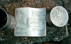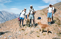 The trip went on Sep 23-24, 1995 and was led by Scot Jamison and Julie Rush and there were four human and three dog participants. I learned a lot about dogs on this hike, that they have also leaders, that size does not matter, but experience does. Dogs can get altitude sickness like people, they need booties to avoid bloody feet on rock, they need plenty of water since they cool only with their tongues.