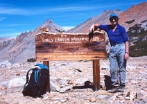 The first day I hiked up the North Fork Lone Pine Creek to the Upper Boy Scout Lake which makes a good basecamp for the three peaks. There was enough time to do Thor in the afternoon. From the summit (12,306') one had a splendid view of the east face of Mt Whitney (14,505') and of Russell to the north and McAdie to the south. It was a fine start of the trip.