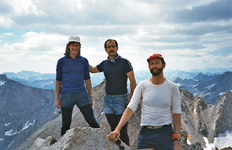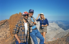 I found many pictures of former peak climbing trips which may be entertaining or even useful for others planning similar hikes. Otherwise they would fade into oblivion. Most of them are from former listed or private peak climbs throughout the Sierra Nevada. I have ordered them roughly by regions but do not claim completeness or all SPS peaks, just showing some selected cases. Short trip descriptions are added from memory or other write-ups. All old pictures are scanned photographs, hence do not have the same quality as the present digital pictures. Haeckel and Wallace This was an SPS trip on July 31-Aug 1, 1988. Ken Duzy and myself led a group of 8 hikers from Lake Sabrina (Bishop Creek) into the beautiful backcountry around Moonlight Lake. We climbed both peaks, as described in a copy of a trip report. We had thunderstorms, sunshine and an injured hiker, all you can experience on a backcountry adventure. The pictures show more than a thousand words. We had a fun weekend. |