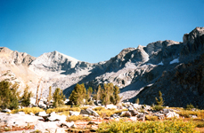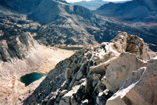 It was a solo hike via Taboose Passon Sep 8-11, 1994. The first day was needed to get over Taboose Pass, a 6,000' climb, and to establish a base camp near Mt Ruskin since I like to climb early in the morning. Mt Ruskin is an SPS Mountaineers peak, with high class 3 climbing, which is exciting and rewarding. So are the views from the summit on a clear Fall day. More details about climbing routes are found in R.J.Secor's guidebook or many websites and trip reports.