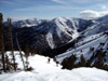 We started a long slog thru the forest and heavy powder snow. After a long struggle with clawing branches and thick roots we made it above the treeline. By the time we got there, a storm was starting to blow in. This was the precursor of the big 6' in 3 days storm.