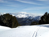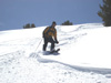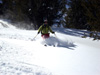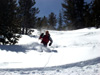 Seeing a good glade we climbed higher thru 3' of light powder. Gaining the ridge line we toured up to the top of the peak. With views of Mammoth Mountain to the south and San Joaquin Peak's east face with the negatives in view, we ripped our skins and picked our lines thru the sparsely treed glades. Snaking thru the light powder we found our rhythm and carved our initials on the virgin powder canvas. Too quickly we were back at treeline. We used our previously built skin track to quickly hike back up and make our marks on the untracked slopes in the vicinity.
