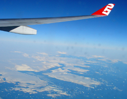 On a trans-Atlantic flight I was lucky and had clear weather by midday when the plane crossed over the southern part of Greenland. I took pictures of a winter scenery, which we definitely do not see in Southern Califiornia and wanted to share them with other skiers and climbers. Of course, this is expedition country, not SMS trip terrain. Just have fun to watch it! Some day it may be melted away... It shows the sea with icebergs, the ice shelf near the coast, snow-covered mountains and glaciers. Please enjoy also Alvin Walter's trip pictures from Iceland from the ground in mid-summer. |