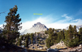 TUESDAY: We got up at 4:15am, broke camp and headed one mi. South on the Kern Valley trail to an unnamed Lake 11,280' (RB That lake was packed with trout. I watched a fisherman pull in an 8" trout on his second cast.) to set up a basecamp for Jordan and Genevra. Larry decided to head back early and bid us farewell. After securing our food in trees we left for Mt. Jordan at 7:30. We ascended a gully on the East face, turned left (South) about 100' below the notch, and encircled the Southern peak on duck-marked
