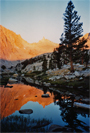 SATURDAY: Out of habit we got up at 4:30am. Reiner climbed Tyndall. (RB started down at 6:00 and reached the trailhead at 11:45). The shortest ascent was to climb up a rock ledge on the North face and to follow the cl. 3 ridge to the summit, which was reached at 7am. From then on it was all down hill, 8,400' down to Symmes Creek Trailhead (5,600'). At 4:30pm we changed into clean clothes and drove off into the desert heat.