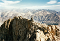 SUNDAY: Rick and Reiner left at 5:30am for Shepherd Pass. deposited the packs at Lake 12,002', secured the food from marmots and headed up to Junction Peak. We ascended the South slopes of Diamond Mesa, followed along a knife-edge ridge to Junction and reached the summit at 10:30am. (RB In climbing the peak, we followed the ridge between Diamond Mesa and the Peak until the mountain and then went right (Southeast) and up the ridge on easy but somewhat sustained cl. 3 rock until reaching the area where the summit is visible. From there it was a mixture of cl. 2 and cl. 3 to the summit.)