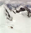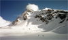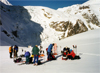 Another 4:30am rise and 5:30am start in near white-out conditions. Rich had breathing difficulties and was advised by Ruedi to return to Arolla ("Zehn kleine Negerlein..."). Skied up the Glacier de Cheilon, over the Col de Cheilon toward La Ruinette. Made first break at the west side of Mt Blanc de Cheilon between two large crevasses.