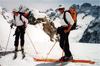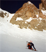 At 7:30am skied down powder slopes to the col, picked up our packs and descended into a valley leading to the Swiss town of Arolla. The upper slopes were crusty and steep, which required careful sideslipping and balanced snowplow turns.