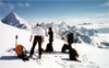 The rest of the group skinned up on open slopes toward the Cabane des Vignettes (3160m). At a lunch stop, Ruedi's ski came off which prompted the call "down to Arolla"! We reached the hut by 11:30am, settled down, and after a short break Ruedi and 6 of us (2 Randies, Gordon, Catherine, Reiner, Derek) went off to ascend the Pigne d'Arolla (3796m).
