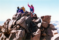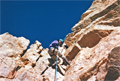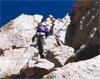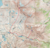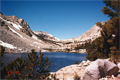 This was a summer peak climb of an SPS emblem peak. The SMS often skis in the vicinity of Mt Humphreys, for example on Basin Mtn, Mt. Tom, Mt Locke and in Humphreys Basin, the French Canyon, etc. Mt Humphreys called to be climbed. We were a small group of three climbers, Matthias Selke, his wife Xin and myself. Since this was our first attempt of this class 4 peak we chose the standard route via the southwest slope and northwest face, as described by R. J. Secor. We started at North Lake, ascended to Piute Pass and camped at Summit Lake in the upper Humphreys Basin. We had a full moon. In the morning the lake was calm and the reflections of mountains, moon and blue-red morning sky were very pretty. We hiked toward the Humphrey Lakes and ascended a cl 3 ledge to the left (north), which led to a wide gully ending in a notch. A 100' section of class 4 was climbed with belay. A bit higher another short cl 4 section with good handholds was climbed free. After that it was an easy scramble to the summit (13,986'). The climb following the route description worked out perfectly. Other climbers also arrived on this popular peak. We had our lunch, took pictures, signed the summit register and enjoyed the views. After an hour we descended via the same route we came up. We rapelled on the short class 4 section, otherwise it was a fun class 3 climb. In the late afternoon we were back in camp and relaxed after a successful and exciting peak climb. The next morning, Mathias and Xin hiked out while I made a detour to climb Mt Emerson. I started from Piute Pass trail near Loch Leven and ascended gullies straight to the summit (13,225'). From there one has a fine view of Mt Humphreys, the Glacier Divide, Emerson Crags and the Bishop Creek drainage. From then on it was all downhill, first XC, then trail and road to sea level. It was a fine weekend of climbing two new peaks with two new friends.