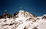 We met at North Lake on Sat, 5/18. Participants were Pat and Gerry Holleman, Scot Jamison and Reiner Stenzel. From North Lake we skied toward Grass Lake. Instead of the summer trail along the Lamarck Lakes we ascended along the creek drainage south of Grass Lake, which leads into a chute between Pks 12,107 and 12,396 and continues southwest directly to Lamarck Col. It makes a wonderful ski run down - provided the snow is good.
