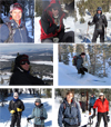 The rest of the crew opted for either a rest or the ski area, while Carol decided to tour with the Range of Light group (the local chapter of the Sierra Club). At the Obsidian trailhead, it started to snow and you could barely make out the Chicken Wing from the road. The snow was very thin in the parking lot as most of the sagebrush was exposed, but we decided that the climb of about 2000 feet would probably mean more powder up on top. We headed southwest along the Obsidian Dome ski trail until we encountered the turnoff to Hartley Springs camp, where we continued southwest into the forest. Around 8500 feet we came across another road crossing, and turned left for a short distance before starting our steep ascent (about 1300' in 1/2 mile) to the top of Chicken Wing. The snow coverage was a little thin near the bottom and we had to zig-zag our way around large fallen trees. Fortunately with a big group of enthusiastic guys, everyone got a chance to break trail in 6-12 inches of fresh pow all the way to the top, and we arrived around 1PM on the summit.