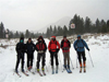 The rest of us (Laura, Carol, the two Mikes, Tom, Dave, Bill and Ken) also started at Tamarack, headed toward Barney Lake below Duck Pass as our destination for the day. Near Coldwater Camp, our group ran into Jim Garvey, SMS Outings Chair Heiko Knapp, and friend Greg Sadowy. Greg's randonnee binding had just broken, and he decided to go back to town and rent some skis at the ski area. Jim and Heiko decided to join us for the climb, so our group had grown to 11. The temperatures were frigid as we continued the slog up the free groomed track to the Duck Pass trailhead.
