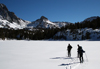 The clouds had parted and we enjoyed beautiful views of Mono Lake to the northeast, the backside of June Mountain to the west, and a bare, windswept White Wing (which should have been called Brown Wing) to the southwest. White Wing is another destination which usually has good snow, but this year, the lack of trees didn't allow the snow to stick, so Chicken Wing was the place to be.