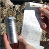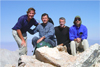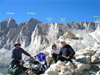 By 1 pm we were all on the summit of Mt Marsh (13,550' or 4130m). Under a pile of rocks was a peak register. Two stacked soup cans contained a plastic bag with another metal cylinder inside, a Colgate shaving stick container. It contained two long sheets of paper with all the original entries, starting with the first ascent by Chester Versteeg and his party in Aug 1940.
