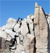 So we chose to climb to the right of the rib on rock and talus blocks. After a long ascent we reached the ridge west and above Whitney Pass (13,280'). According to the map running the ridge appeared easy, but in reality there were a few short cl 3-4 surprises on the way.