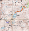 Bob Rockwell describes an ascent via the obvious chute from Consultation Lake to Whitney Pass. It is a 1500' climb on sand at the angle of repose, not my favorite uphill choice. Besides it is difficult to enter the chute from either the lake or the steep rib to the right (north) of the chute. We later descended it and named it the "No-no" chute.