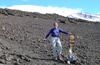 After doing a few runs down the crater we headed back down. We enjoyed to ski the long outside slopes of the crater. Further down the snow got wetter and thinner and it became a challenge to turn around the many rocks.