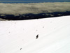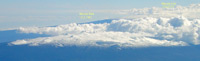 We had only half a day since my son had a return flight in the evening. A bid for the summit (15mi rt, 4,600') was out of question and too risky because billowing clouds were rising up again. Thus, we aimed at a closer, snow covered cinder cone, Pu'u Keonehehe'e, at the 11,600' level. |