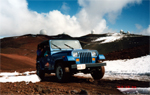 Skiing on Mauna Kea, Jan 3, 1993This is another short report about skiing on Mauna Kea. On Dec 29, 1992, we did an exploratory trip to the summit. Since much of the upper mountain road is a dirt road we rented a jeep. It is a day trip from Kona. Although the scenery and the views were splendid we found no snow on the 13,796' summit. In the next few days a storm moved over the island. When it was over, we went back to the snow-covered summit. We were not alone since many locals came up and snowboarded on short surfboards. There is only a short window of good snow after a storm. The snow becomes rapidly crusty from the intense sunlight and cold wind. But it was fun to parallel with short skis on the smooth slopes of a volcano. |