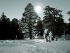 From this point the snow was very heavy and turning was difficult. About half way down this slope and while attempting a turn Lorene hurt her knee.