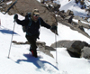 We wasted some time skirting around an exposed rocky section and reached an elevation of 11,300 feet at noon. From here Rich took off his skis and proceeded on foot towards the summit following Reiner who kept his skis on.