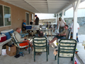Tue, 4/23, I hiked down into the low desert, crossed the I-10 and the railroad tracks, passed through Cabazon and arrived at the home of the famous trail angels "Ziggy and the Bear". There were almost a dozen hikers taking a break. We were treated to a footbath, took showers, washed clothes, were served a healthy salad and lots of ice cream, signed a trail register, and sozialized till late at night.